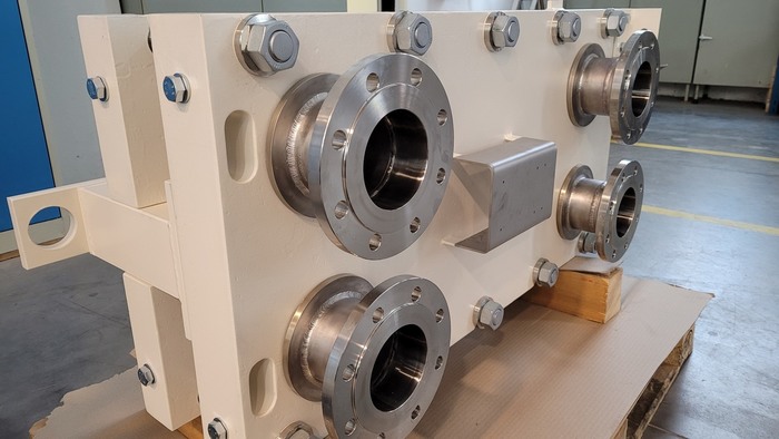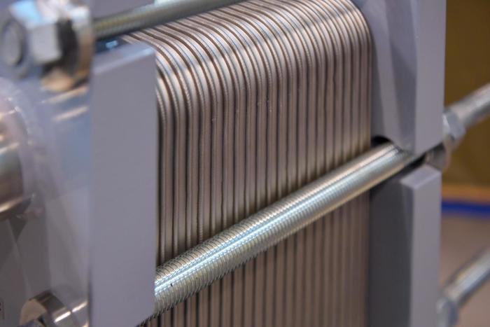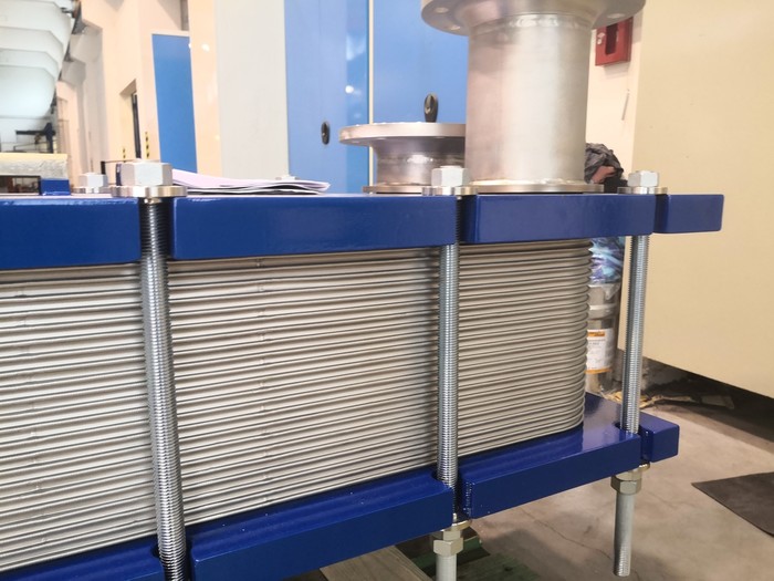 The ST30 heat exchanger from the Standard line product line has received everything you expect from an exchanger for industrial operation. It is a higher model which uses a heat exchange area of up to 91.1 m2 and has a maximum flow of up to 450 m3/h when connected to DN 150. It is possible to use a smaller type of connection DN 100. This model which is characterized by long life and durability, we are happy to design and deliver. We are able to produce this type of exchanger with a maximum number of 200 plates.